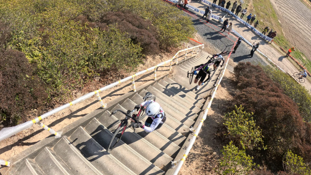 レースが始まると、落車はないけどパッシングポイントで一気に空いたラインを進めてジャンプアップしながらも、柔らかい路面になり苦戦w。何とか前に進み20番代で進む。